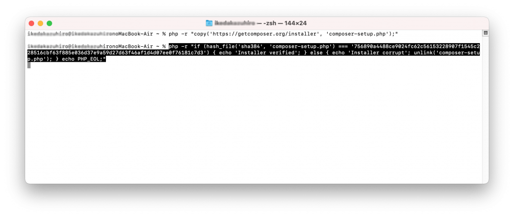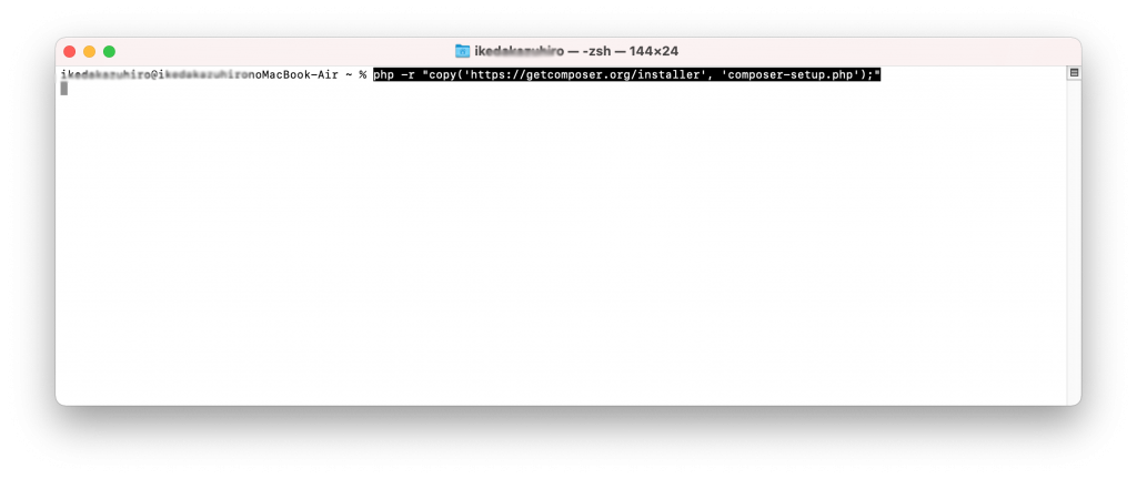 ここまででcomposer本体のファイルがMACの中のあなたのホームディレクトリにダウンロードされた状態になりました。