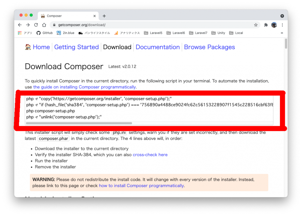 composerのインストール(MAC)
