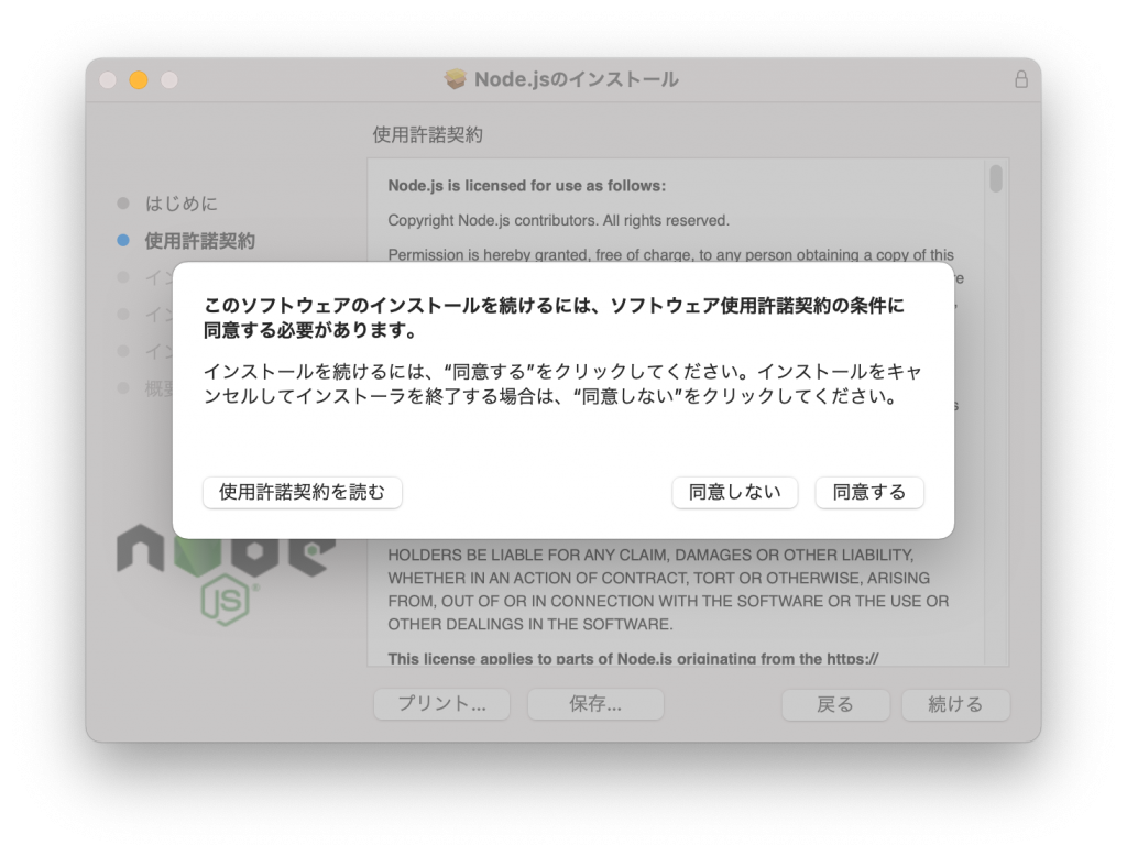 続けるをクリックするとライセンス合意に移りますので合意してください。
