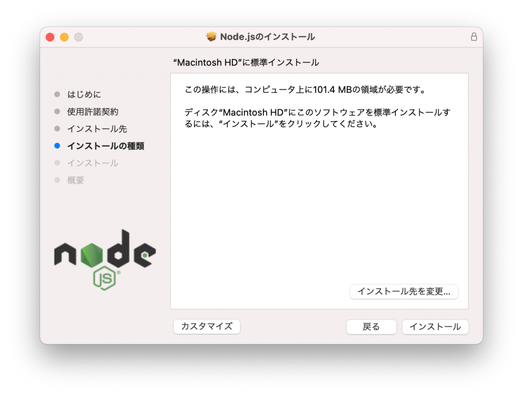 最終確認画面が出ますのでそのままインストールをクリックします。