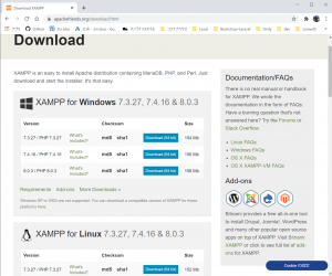 リンク先のページで「Windows 向け XAMPP 7.3.27, 7.4.16 & 8.0.3」のところの7.3.27をクリックします。