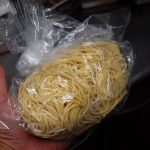 太麺がないので近くのラーメン店【秀光】のつけ麺用の太麺をGET。