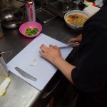 途中で、『ニンニクが足りん』と言いながら、青森産のニンニクを刻んで、味ももうちょい濃いめがいいと醤油だれも足してました。