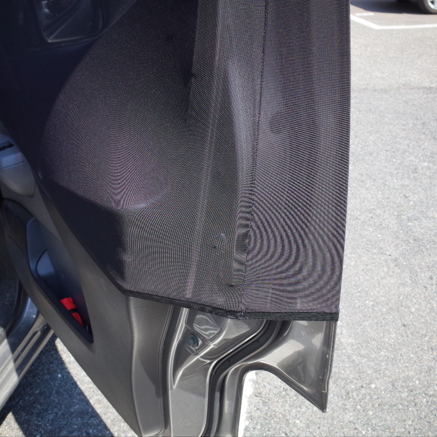 被せるときに下の写真のようにドアロックの金具部分まで被せてドアを閉めると、、、、、、