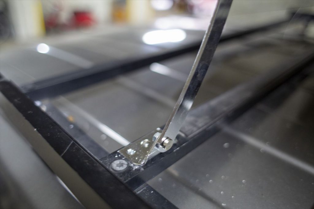こんな金具で、左右どちらにも傾斜をつけて運用できるようにしています。