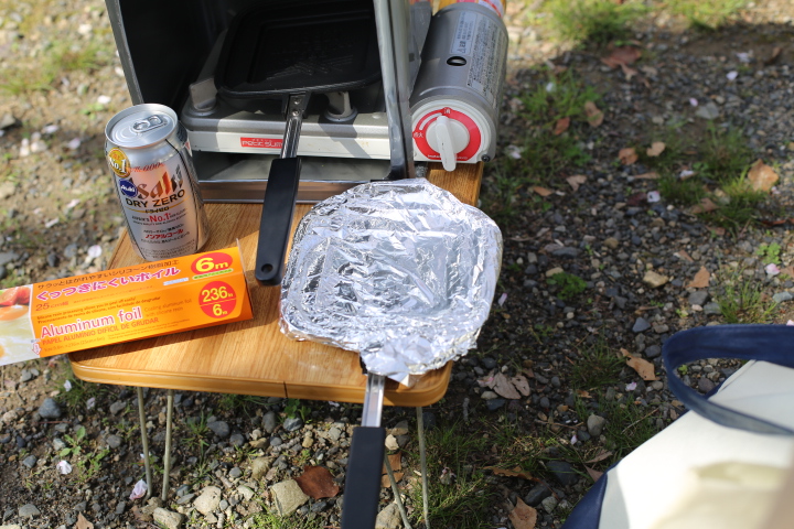 ホットサンドメーカーにアルミフォイルをかぶせます。