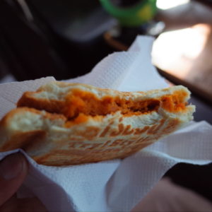 食べた感じは、カレーコロッケの中身です。うまいです。ほくほくです。