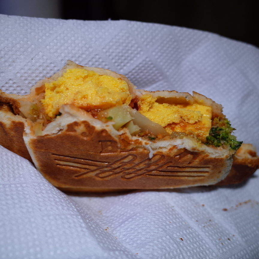ホットサンド【7-11厚焼き玉子とブロッコリーとキャベツのごま和えサラダ】